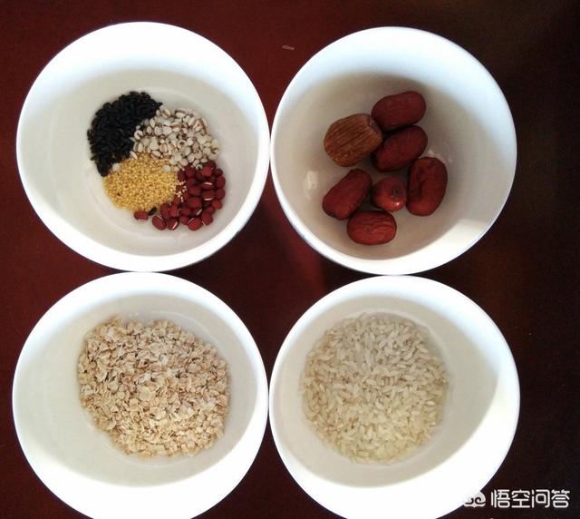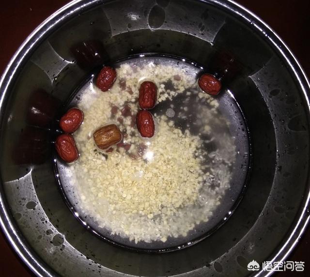 4:Ajouter les dattes rouges et les dattes au miel après les avoir lavées, puis laver et verser les haricots rouges, le millet, l'orge et le riz noir ensemble. Enfin, vérifier la quantité d'eau.