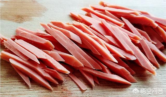 2 : Prendre une saucisse de jambon, la couper en fines lamelles et la mettre de côté ;