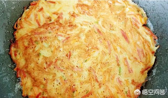 [Aujourd'hui, j'aimerais partager avec vous une façon facile et nutritive de préparer des crêpes pour le petit-déjeuner - des crêpes aux œufs râpés de pommes de terre et de carottes.