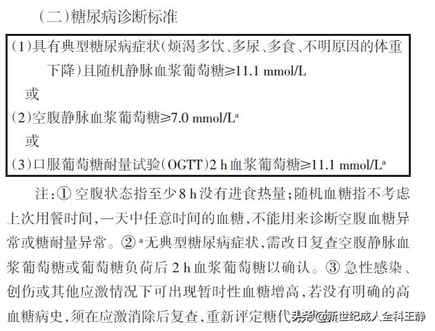 4) Pour les personnes qui ne présentent aucun symptôme de diabète et dont la valeur de la glycémie atteint les critères de diagnostic du diabète en une seule occasion, le diagnostic doit être confirmé par un examen et une vérification un autre jour. Si les résultats de l'examen ne répondent pas aux critères de diagnostic du diabète sucré, ils doivent être revus périodiquement.