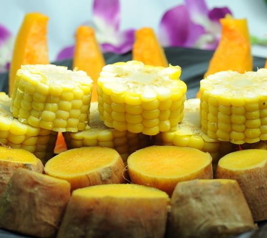 Maïs, soja, concombre, céleri, chou-fleur, tomate, asperge, varech, chou, papaye, pomelo, aubépine, viande de pigeon, concombre de mer, carpe, calmar, saumon, morue, yaourt, huile de sésame, huile essentielle jaune, baies de goji.
