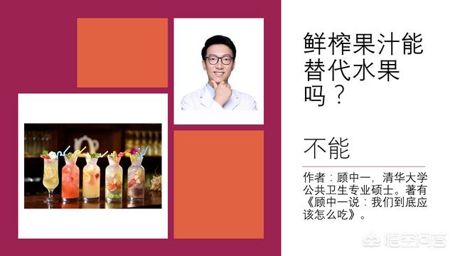 Merci pour l'invitation. Les fruits sont sans aucun doute un aliment qu'il est recommandé de consommer quotidiennement, avec une saveur sucrée et nutritive qui peut fournir à l'organisme des nutriments suffisants et de haute qualité. Plus précisément, les directives diététiques pour les résidents chinois suggèrent que les personnes normales doivent consommer entre 300 et 350 grammes de fruits frais par jour, ce qui ne semble pas être une quantité énorme, mais qui est vraiment difficile à atteindre pour de nombreuses personnes dans la vie réelle. La question se pose donc de savoir si l'on peut boire du jus de fruit au lieu de manger des fruits, car certaines personnes pensent qu'il est plus économique de boire du jus de fruit et que le goût est plus parfait. En fait, une telle pratique n'est pas fiable, mais je vous demande à tous de regarder la science.