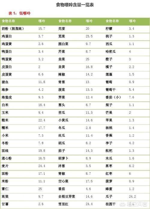 Le profil de la teneur en purine des aliments est le suivant :Abats > viande > poisson > haricots secs > noix > légumes à feuilles > céréales > fruits.