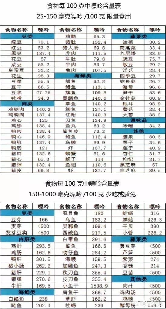 Les aliments riches en purines peuvent provoquer une augmentation transitoire du taux d'acide urique dans le sang et déclencher une crise de goutte aiguë. Il convient donc d'éviter les aliments à forte teneur en purine, tels que les abats, la moelle osseuse, les fruits de mer et toutes sortes de produits d'assaisonnement. La consommation modérée d'aliments à teneur moyenne en purine, tels que les épinards, le chou-fleur, les fruits secs et autres céréales grossières et graines végétales ; dans le régime habituel, il convient de privilégier les aliments à faible teneur en purine, tels que les asperges, le chou-fleur, le poulet, l'agneau, etc.