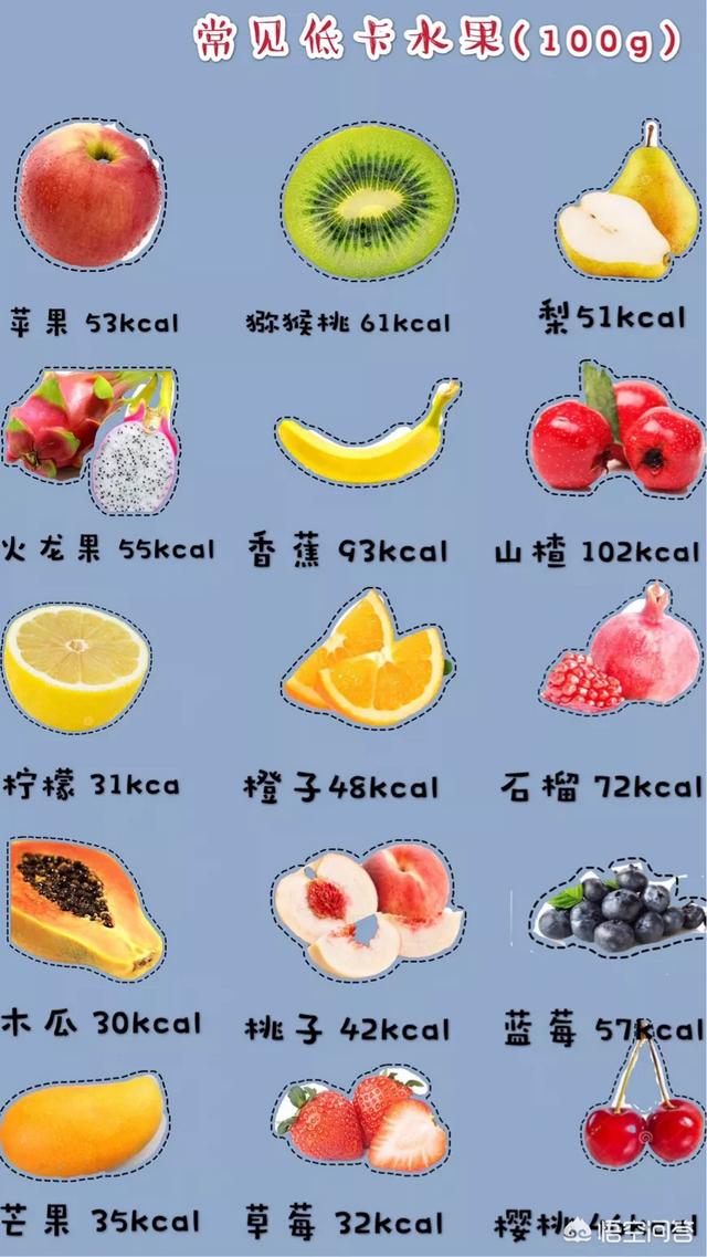 Les fruits hypocaloriques les plus courants sont les pommes, les poires, les kiwis, les aubépines, les bananes, les fruits du dragon, les citrons, les oranges, les grenades, les pêches, les myrtilles, les cerises, les papayes, les fraises et les mangues.
