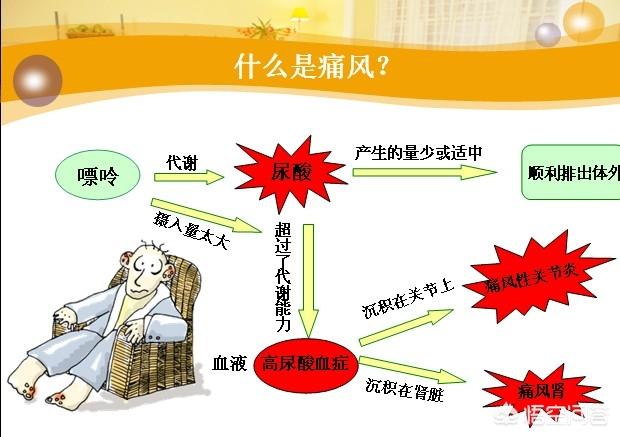Les aliments à forte teneur en purine déclenchent des crises d'arthrite goutteuse. Il s'agit notamment de divers abats d'animaux (foie, rein, cervelle, rate, etc.), de certains produits aquatiques (sardines, anchois, etc.), de bouillons de viande, de bouillons de poisson, de soupes à l'eau chaude, etc.