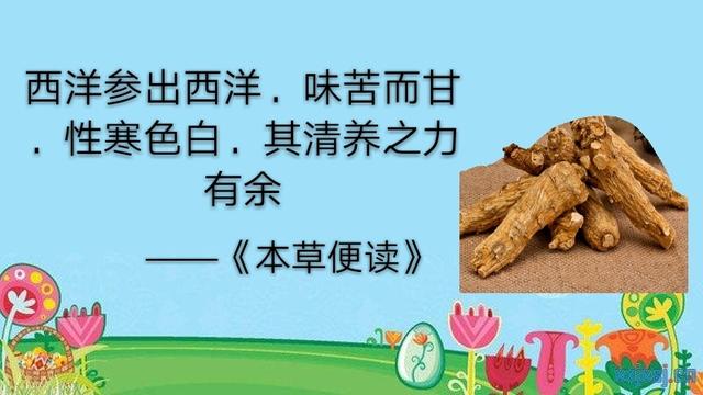 • ②Le goût doux et amer, le goût amer est plus lourd que le ginseng, l'amer dans les cinq saveurs appartient au yin, le yin principal froid, les propriétés médicinales d'un peu de froid, le froid peut dégager la chaleur, applicable à la déficience du qi et de la chaleur n'est pas soumis à la chaleur de ginseng de la maladie. Sa texture douce, riche en jus, est bonne pour tonifier le yin. Par conséquent, en plus de tonifier le qi, le ginseng américain a également pour effet de nourrir le yin, d'évacuer la chaleur et de générer des fluides.Les médicaments chinois sont classés en fonction de leur efficacité et, dans le cas du ginseng américain, par exemple, son odeur et sa forme déterminent l'efficacité à favoriser le qi et à nourrir le yin, et ne reflètent pas l'effet de réduction du taux de sucre dans le sang, ce qui est fondamentalement différent de la classification des effets pharmacologiques des médicaments chimiques (médicaments occidentaux).