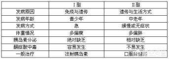 Complications : en général, le risque d'acidocétose dans le diabète sucré de type 1 est beaucoup plus élevé que dans le diabète sucré de type 2, et la même concentration de glucose dans le sang est moins bien tolérée dans le type 1 que dans le type 2, et la néphropathie, la rétinopathie, etc., apparaissent plus tôt et plus souvent, et le risque de maladie coronarienne et d'accident vasculaire cérébral dans le diabète sucré de type 2 est plus élevé que dans le diabète sucré de type 1.