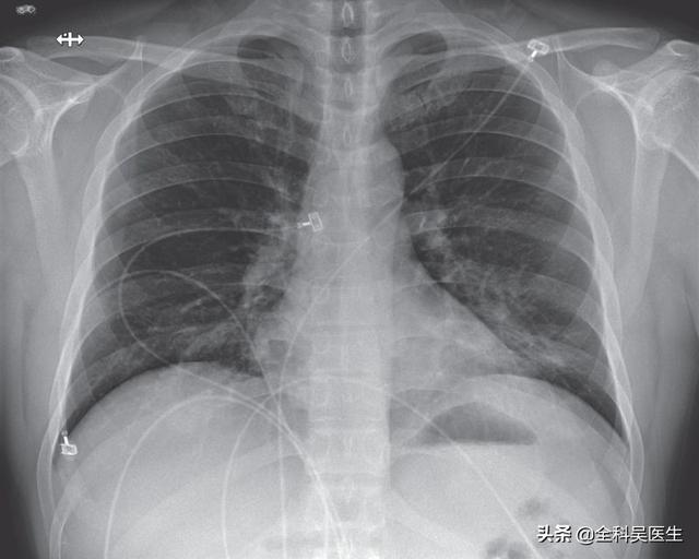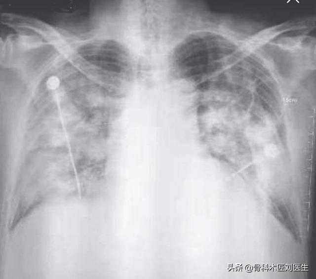 ②La tomodensitométrie thoracique peut suggérer de multiples ombres parcellaires et des changements interstitiels au stade précoce, et elle est évidente dans les bandes extrapulmonaires, et l'examen ultérieur développe de multiples ombres en verre dépoli et des ombres d'infiltration dans les deux poumons, et dans les cas sévères, des lésions pulmonaires solides apparaîtront.