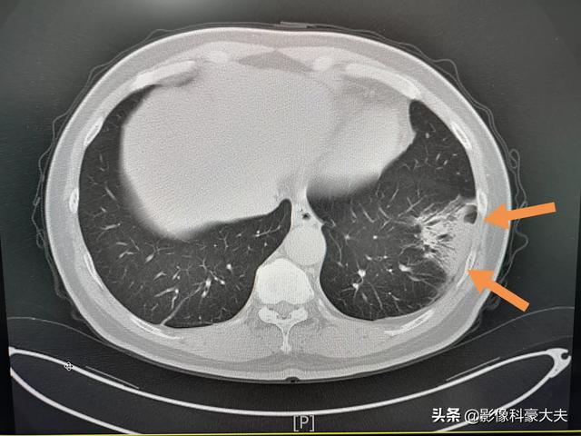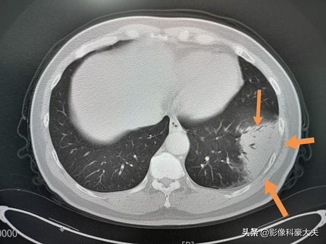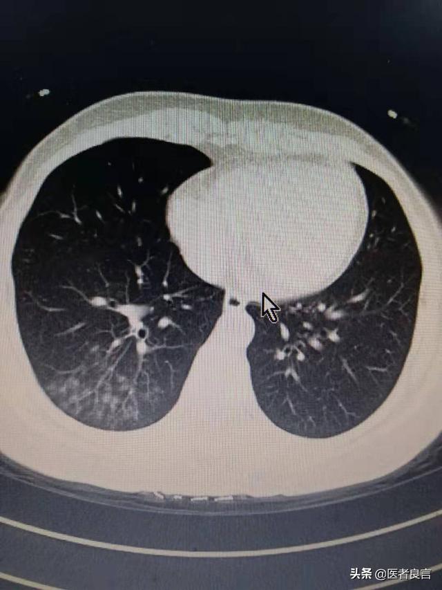Cet homme d'âge moyen, qui toussait et avait de la fièvre depuis trois jours, présentait au scanner une pneumonie inférieure gauche, répartie le long du sous-segment, avec une densité relativement élevée (pas d'ombre de verre dépoli), et des signes d'insufflation bronchique étaient observés du côté hilaire des poumons, accompagnés d'une augmentation de la numération sanguine, ce qui en faisait une pneumonie banale, et non un coronavirus.