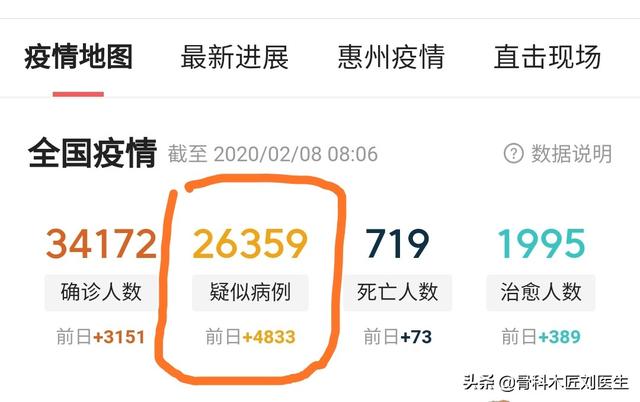 Je pense que dans l'épidémie actuelle d'infection à nouveau coronavirus, les patients suspects mentionnés dans le titre devraient se référer aux patients suspects d'infection à nouveau coronavirus. Les termes "suspect" et "douteux" sont relatifs aux patients confirmés. En général, ces patients ont des caractéristiques épidémiologiques, une présentation clinique ou une imagerie très similaires à celles des patients confirmés, à la différence qu'ils n'ont pas encore reçu de diagnostic pathogène. Les maladies infectieuses doivent avoir un agent pathogène, de sorte qu'un diagnostic pathogène est nécessaire pour confirmer le diagnostic d'une maladie infectieuse. Par conséquent, tant qu'il n'y a pas de diagnostic pathogène, le cas ne peut être considéré que comme un cas suspect. Par exemple, à l'heure actuelle, il y a 🈶26 359 patients suspects ⬇️⬇️⬇️ . Vous avez remarqué ? Il y a beaucoup de patients dans cette section, et leur nombre augmente chaque jour ! Par exemple, aujourd'hui, il y en a 4 833 de plus. Le jugement des patients suspects est donc très important !