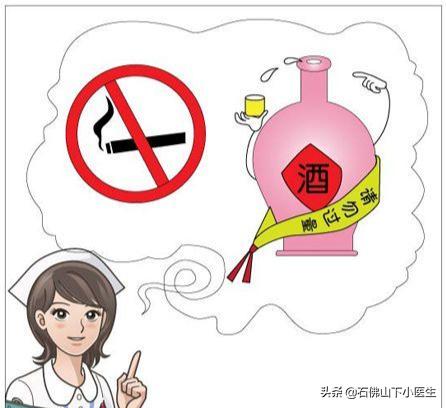 - Ne fumez pas et ne buvez pas d'alcool, et ceux qui ont déjà fumé devraient arrêter progressivement. Il est préférable de ne pas boire d'alcool, et si vous le faites, vous devez le faire lorsque votre état est stable, et la quantité d'alcool consommée doit être strictement contrôlée.