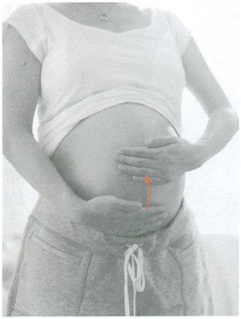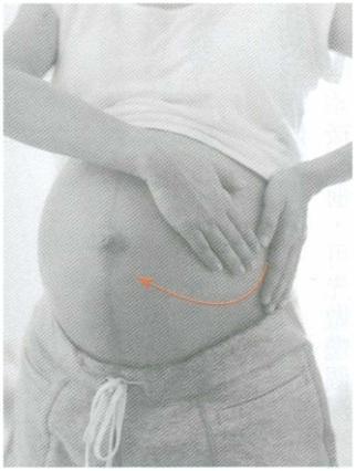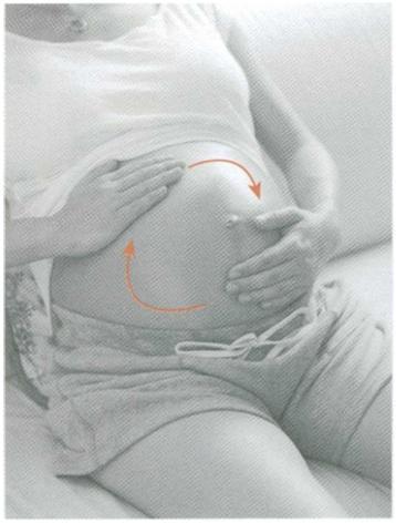 2) Ensuite, s'occuper du bas-ventre, les mains allant alternativement du bas-ventre vers le nombril, ce qui est également répété environ 3 à 5 fois.