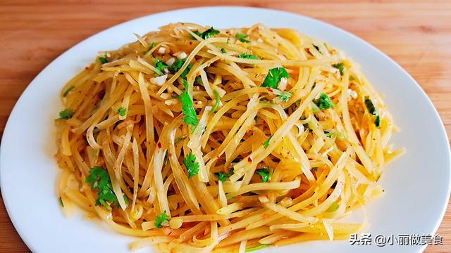 Mettre un peu d'huile dans la poêle, couper les tranches d'ail dans la poêle et faire sauter l'arôme, verser la soie de carotte, faire sauter jusqu'à sept ou huit minutes de cuisson, verser le céleri, la viande déchiquetée, saupoudrer de sel et de sucre, faire épaissir uniformément, puis faire sauter quelques fois dans la poêle sur l'assiette !