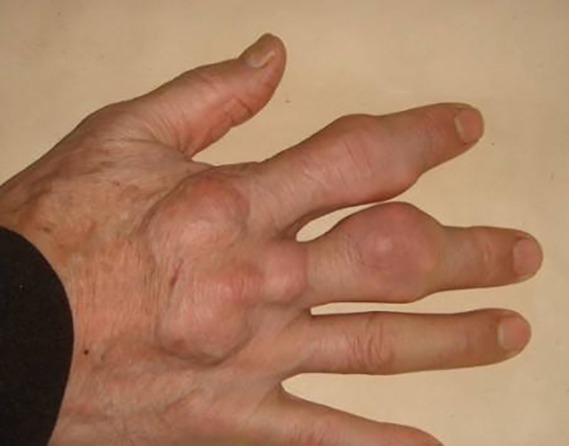 Si le taux sérique d'acide urique est supérieur à 500 unités, s'il y a de petits nodules dans les os et les articulations et s'il y a des symptômes de douleurs articulaires, on peut alors diagnostiquer une arthrite goutteuse, et ce mal est principalement dû au déclin de la fonction rénale et à la déformation des articulations.