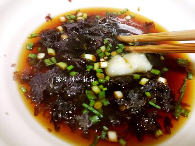 3. Base de la soupe wonton : sauce soja, échalotes émincées, chou violet, sel, saindoux, si vous aimez manger épicé, vous pouvez mettre de la sauce piquante.