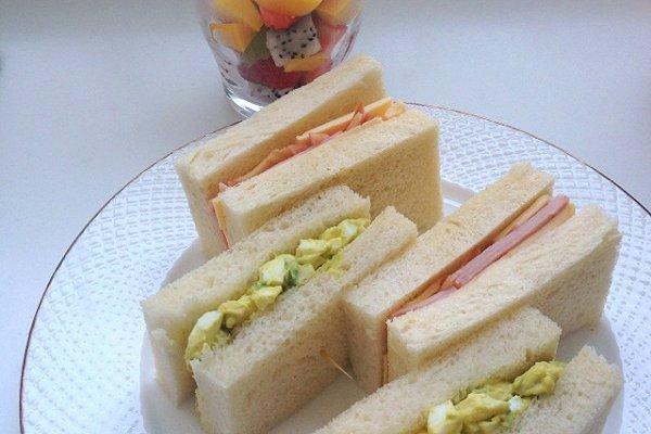Sandwich chinois sur pain de mie avec œuf et tomate.
