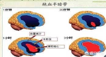 (Note : Cette figure montre qu'avec le temps, le tissu cérébral ischémique autour de la lésion infarcie d'un patient souffrant d'un infarctus cérébral est encore plus ischémique et nécrotique en raison de l'absence de retour rapide de l'apport sanguin).
