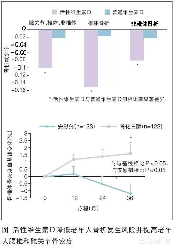 La vitamine D active est l'un des médicaments dont les patients ont besoin. En plus de favoriser la formation osseuse, la vitamine D active permet également d'augmenter la production d'ostéocalcine et l'activité de la phosphatase alcaline. Pour réduire l'incidence des fractures vertébrales et extravertébrales, les patients doivent également prendre des suppléments de calcium.