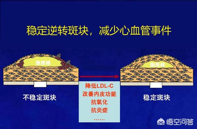 Les statines peuvent non seulement réduire les lipides sanguins, mais aussi être antioxydantes, anti-inflammatoires, améliorer la fonction de l'endothélium, augmenter la densité des plaques et ajuster la composition des plaques, de sorte que les plaques instables deviennent des plaques stables. Les essais cliniques ont montré que les statines doivent être prises de manière continue pendant au moins deux ans pour produire une inversion de la plaque, de sorte que de nombreux patients atteints d'athérosclérose doivent continuer à prendre des statines même si leurs lipides sanguins ont été ramenés à la normale.