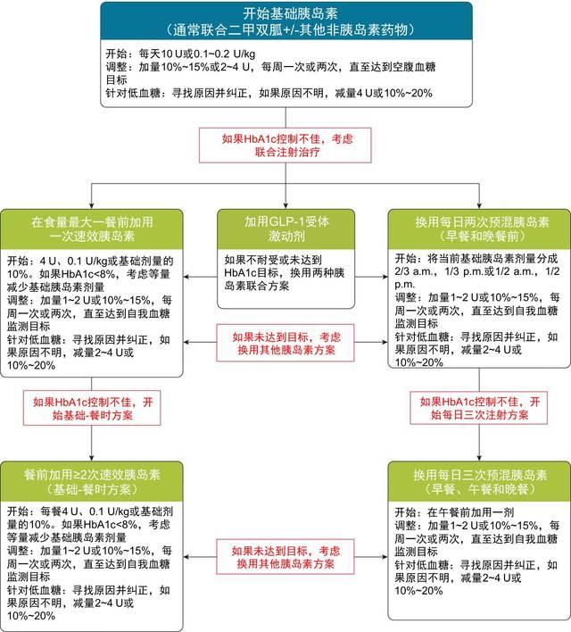 1) Les patients atteints de DT2 d'apparition récente présentant des symptômes hyperglycémiques évidents, une cétose ou une acidocétose, une hémoglobine glyquée (HbA1c) ≥9,0 % ou une glycémie à jeun >11,1 mmol/l peuvent bénéficier d'une réduction rapide de la glycémie par l'insuline, puis le plan de traitement suivant peut être envisagé une fois que l'état est stabilisé.