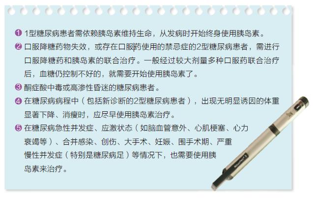 L'insuline est la seule substance de l'organisme qui abaisse le taux de sucre dans le sang et constitue un traitement important du diabète. Le diabète de type 1 doit dépendre de l'insuline à vie, quelle que soit la glycémie ; le diabète de type 2 détermine s'il faut utiliser de l'insuline en examinant la glycémie, mais surtout l'hémoglobine glyquée.