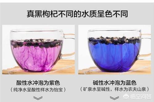 Une autre chose que vous avez peut-être remarquée, c'est que les baies noires de goji brassées dans différentes eaux auront des couleurs différentes. Dans un environnement faiblement acide, les anthocyanes sont rouge rosé, dans un environnement neutre, rouge pourpre, dans un environnement faiblement alcalin, bleu pourpre, plus l'alcalinité est forte, plus la couleur est bleue. Ainsi, l'eau pure faiblement acide sera infusée en rouge rose, l'eau minérale faiblement alcaline et l'eau du robinet seront infusées en bleu-violet.