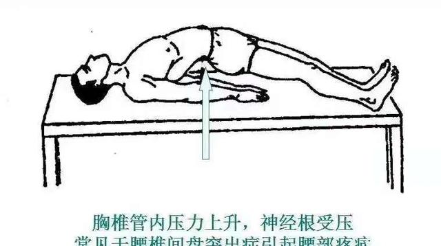 Allongé sur le lit, inspirez profondément en même temps pour soulever l'estomac, retenez votre respiration et toussez fort, pour sentir s'il y a apparition ou aggravation de la douleur irradiant de la hanche et des membres inférieurs. La hernie discale lombaire s'aggrave lorsque la pression abdominale augmente, par exemple en cas d'éternuement ou de toux.
