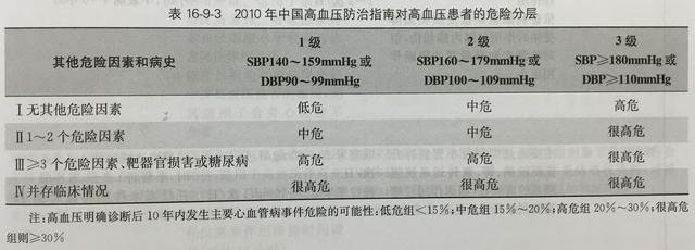 Les lignes directrices chinoises 2010 pour la prévention et le traitement de l'hypertension considèrent l'hypertension comme un "syndrome cardiovasculaire", et la stratification du risque de la maladie est donc conçue pour évaluer le risque cardiovasculaire global du patient et pour guider le traitement. Cependant, les facteurs pronostiques qui affectent le pronostic de cette maladie comprennent non seulement le niveau de pression artérielle, mais aussi d'autres facteurs de risque de maladie cardiovasculaire, des lésions des organes cibles, des conditions cliniques coexistantes, etc. Par conséquent, il est plus significatif sur le plan clinique de combiner le niveau de pression artérielle avec les facteurs susmentionnés et de stratifier les patients en fonction du risque d'événements cardiovasculaires. La stratification du risque des patients hypertendus dans les lignes directrices chinoises 2010 pour la prévention et le traitement de l'hypertension suit la méthode de stratification des lignes directrices chinoises 2005 pour la prévention et le traitement de l'hypertension.