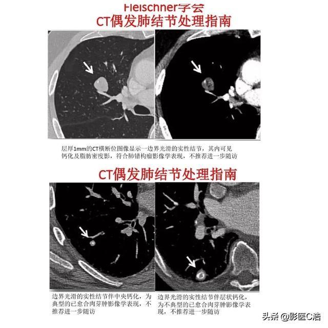 En général, les nodules de moins de 6 mm sont plutôt bénins. Certains diront que les tumeurs malignes ne se développent pas petit à petit à partir de 1 mm, ce qui pose un problème de probabilité. En général, les lésions bénignes sont petites et stables, la plupart d'entre elles s'arrêtent à moins de 6 mm, de sorte que les chances d'être détectées lorsqu'elles sont très petites sont plus grandes, tandis que les tumeurs malignes, en particulier le cancer du poumon à haut degré de malignité, se développent plus rapidement, de sorte qu'il est facile d'être détecté à un stade plus avancé. Les nodules de moins de 6 mm peuvent être suivis de près par un nouvel examen de tomodensitométrie thoracique au moment de la découverte initiale, et l'intervalle entre les nouveaux examens peut être progressivement allongé à l'avenir. S'il n'y a pas de changement, l'intervalle peut être prolongé jusqu'à une fois par an.