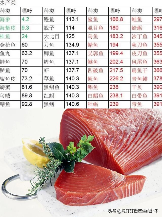 ● Comme d'habitude, regardons la photo, je suis sûre que vous savez tous que les ingrédients de la mer sont souvent déconseillés aux personnes souffrant de la goutte, en particulier les ingrédients tels que...Sardines, espadon, crustacés, coquilles Saint-Jacques, petits poissons séchés et huîtres.Ce type d'ingrédients, tant sur le continent que sur la côte, est plus courant. La teneur en purine est très élevée, comme le montre le graphique ci-dessous, où la gamme rouge des espèces de fruits de mer est particulièrement étendue.
