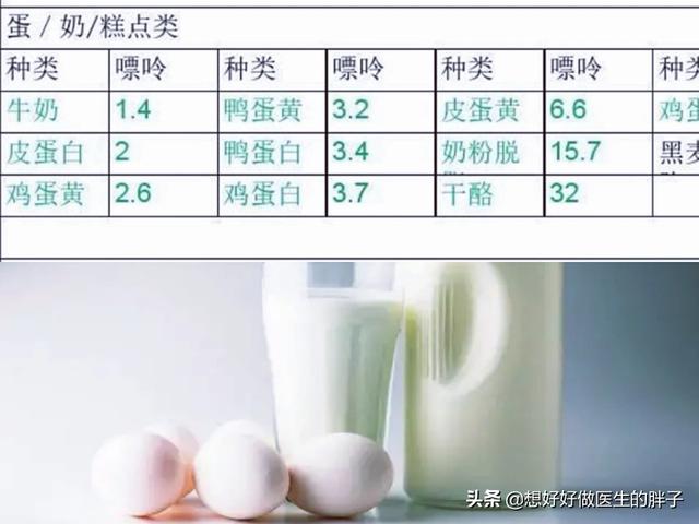 ●Enfin, voyons comment se portent les œufs et les produits laitiers.De nombreuses recherches ont prouvé que les crises de goutte et d'hyperuricémie sont négativement corrélées à la consommation de produits laitiers. Si l'on examine le tableau ci-dessous, on constate que la teneur en purine des produits laitiers est très faible, ce qui s'explique par la très bonne teneur en purine des ingrédients. En d'autres termes, l'ajout modéré de lait à l'alimentation peut réduire le risque de crises de goutte.En cas de goutte, consommez environ 300 ml de lait écrémé par jour.qui non seulement réduit le risque de crise de goutte, mais apporte également le calcium nécessaire. En outre, de nombreux types d'œufs ont une très faible teneur en purine et sont recommandés pour les personnes souffrant de goutte.Les personnes souffrant de goutte peuvent trouver des protéines de haute qualité dans les produits à base d'œufs.La recommandation générale est de se limiter à deux blancs d'œuf et un jaune d'œuf par jour.