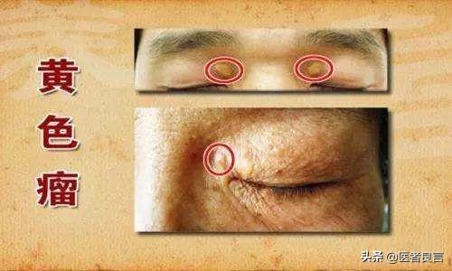 VI. peau avec blépharoplastome.Des papules orange de la taille d'une tête d'épingle ou d'un haricot, douces au toucher, s'étendant parfois aux paupières inférieures, se développent progressivement et fusionnent pour former des cercles jaunes, également connus sous le nom de xanthomes, dans le canthus interne de la paupière supérieure des deux yeux. Il s'agit d'un trouble du métabolisme des lipides, le plus souvent observé chez les patients souffrant d'obstruction hépatique ou biliaire, d'hypercholestérolémie et de diabète sucré.
