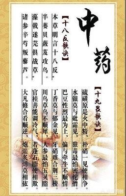 The eighteen antinomials were first found in Zhang Zihe's "Ru Men Qi Zi", which listed three groups of antinomials, namely: licorice against glycyrrhiza glabra, jing dahu, seaweed, and coriander; aconite (chuan wu, appendicia, and cao wu) against half-sia, gua gua (Quan gua gua gua gua gua, gua gua gua gua peel, gua gua gua ren, and smallpox pollen), bei mou (Chuan bai, zhe bai), bai lian (white wild vine), and bai and; quatu (vera vera) against ginseng, saxifrage (southern and northern), danshen (Dan shen), xuan shen (Xuan gan), bitter ginseng (bitter shen), fine pungent herbs (xin chen), and peonies (red peony, pivoine blanche).