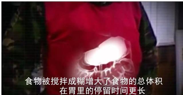 L'équipe de la BBC a réalisé une expérience au cours de laquelle la même nourriture a été distribuée à deux groupes d'équipes d'entraînement. Le premier groupe a mangé normalement et a bu un verre d'eau, tandis que le second groupe a passé la nourriture et l'eau au broyeur pour obtenir une cuillère mélangée avant de manger. Au final, il a été constaté qu'avec la même intensité d'entraînement, le second groupe avait faim plus longtemps. La raison : pour le premier groupe, après le dîner, boire de l'eau, l'eau s'écoulera directement de la fente de la nourriture vers les intestins rapidement, de sorte que l'estomac devient plus petit, il sera rapidement digéré par péristaltisme ; mais le deuxième groupe, parce que l'eau et la nourriture sont entièrement mélangées, les gros morceaux sont digérés plus lentement.