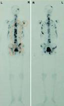 - Scintigraphie osseuse du corps entier :C'est le principal moyen de déterminer initialement la présence ou l'absence de métastases osseuses et il est généralement utilisé comme premier dépistage. C'est pourquoi, lorsqu'une tumeur maligne est diagnostiquée, votre médecin vous recommande de passer une scintigraphie osseuse.Balaie les os sur tout le corps, meilleur rapport qualité-prix. Cependant, certaines réactions inflammatoires observées lors de la scintigraphie osseuse semblent similaires à celles des métastases osseuses, de sorte que d'autres radiographies, un scanner ou une IRM sont nécessaires pour faciliter le diagnostic.