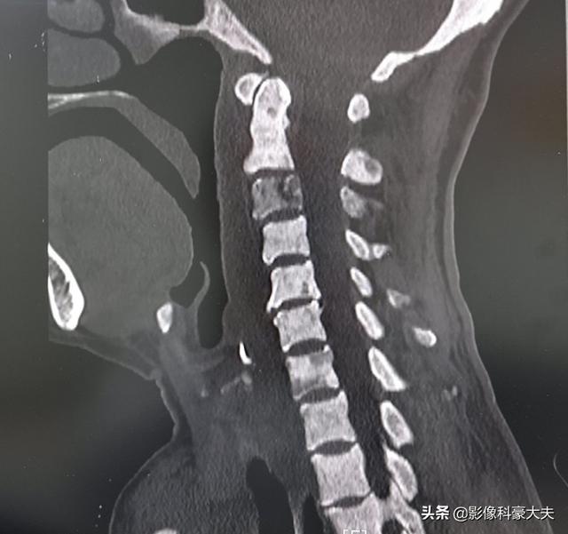 Il s'agit d'un patient atteint d'un cancer gastrique. Le vieil homme a déclaré que son cou était un peu douloureux avant l'opération et que, par conséquent, le scanner cervical a révélé d'importantes métastases dans la colonne cervicale, qui ne pouvait plus faire l'objet d'une opération.