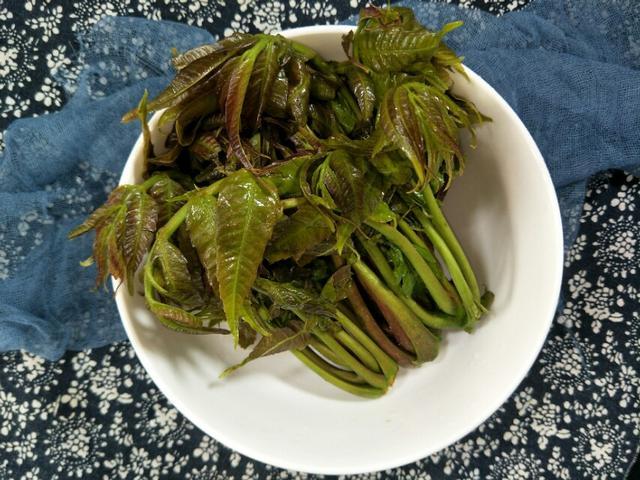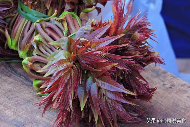 Deuxièmement, les bourgeons de toon. Les germes de toon de printemps sont listés, le bazar en vend beaucoup, parce que les germes de toon contiennent de l'acide oxalique, il y a donc une saveur astringente naturelle, il faut les blanchir pour pouvoir l'enlever, il ne faut pas que ce soit trop long, avec un peu d'eau chaude cette saveur astringente pourra être enlevée.