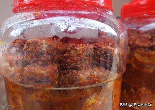 Troisième étape :Les récipients pour le tofu peuvent être des pots en terre cuite ou des bocaux en verre, assurez-vous de les stériliser avec du vin blanc, placez le tofu une couche à la fois dans le récipient, déposez une couche de tofu, saupoudrez une couche de sel et de vin blanc, si vous aimez les amis épicés, vous pouvez également saupoudrer une couche de poudre de piment et de poudre de poivre, et enfin recouvrez d'un couvercle, scellez et conservez pendant environ 20 jours au bon moment.