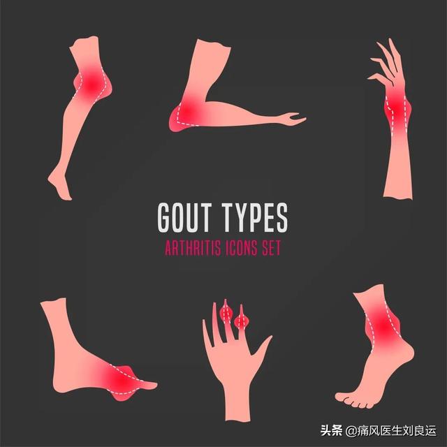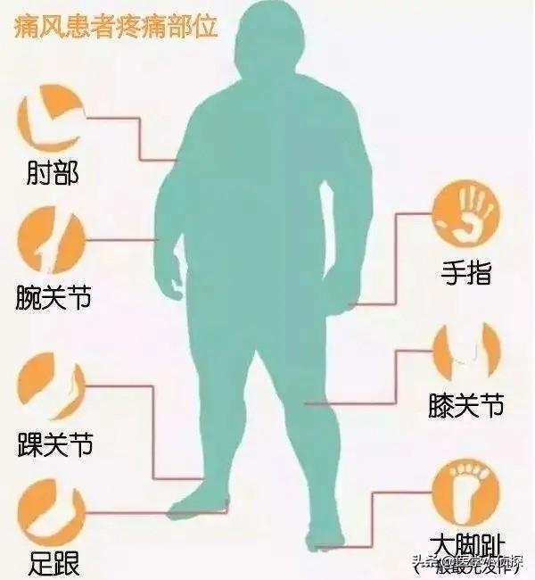 Bien entendu, outre la première articulation métatarso-phalangienne, la goutte peut également frapper d'autres articulations du corps. Les sites d'attaque les plus fréquents sont les racines des autres orteils, le talon, autour du tendon d'Achille, le genou, etc., tous ces sites étant principalement concentrés dans la région des membres inférieurs, et généralement environ 90 % de l'ensemble se situent dans les articulations du genou inférieur, tandis que les doigts, les poignets, les épaules et les autres articulations des membres supérieurs sont moins susceptibles d'avoir une incidence de la maladie.
