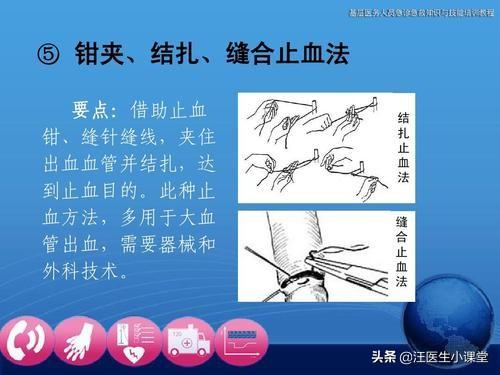 - b. Clamper l'hémostase :Si l'opération est pratiquée sur des vaisseaux sanguins un peu plus gros, le sang jaillit souvent d'un seul coup. Pour ces vaisseaux sanguins plus gros, l'hémostase par compression de gaze ne peut souvent pas fonctionner, il faut alors utiliser une pince hémostatique pour arrêter le saignement, à condition qu'une pince puisse immédiatement arrêter le saignement, puis utiliser le nœud de fil pour attacher les vaisseaux sanguins.