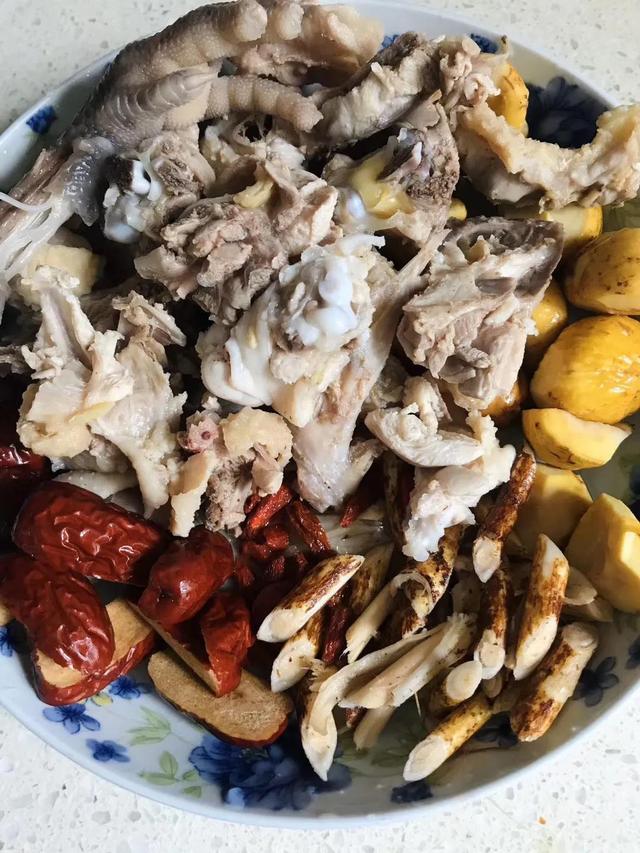 1) La pêche poilue à cinq doigts est lavée et légèrement immergée, les poils de pigeon arrachés pour retirer les viscères sont lavés et l'eau de fuite est utilisée ; Poria cocos est lavé.