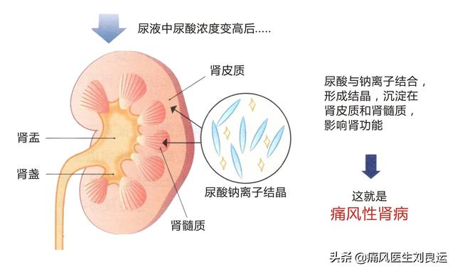 Je ne sais pas si vous avez déjà entendu parler de la "goutte au rein" ? La goutte au rein, également connue sous le nom de néphropathie goutteuse ou néphropathie à l'acide urique, est principalement due à des troubles du métabolisme des purines, à un taux élevé d'acide urique dans le sang, à un dépôt à long terme de sels d'acide urique dans les reins, à une cristallisation et à des lésions rénales causées par une inflammation interstitielle des reins.