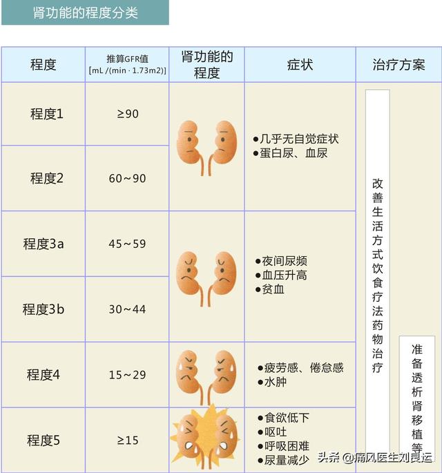 Les reins sont l'un des organes les plus résistants du corps humain. Il est difficile de faire apparaître des symptômes au stade précoce de la maladie. Le corps humain ayant des reins à gauche et à droite, même si les cristaux d'urate entraînent une réduction de moitié de la fonction rénale, certains patients se sentent encore bien dans leur peau, et leur régime alimentaire et leur mode de vie habituels ne sont pas trop affectés. Lorsque la fonction rénale est encore plus altérée, la situation change souvent de manière radicale et la fonction rénale continue de se détériorer, et 17 à 25 % des patients finissent par mourir d'une insuffisance rénale.