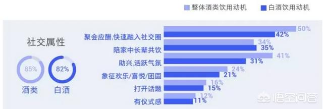 Selon le 2019 Baijiu Industry Digital Development Insight Report, 42 % des gens boivent du baijiu pour des fonctions sociales ou pour s'intégrer dans le cercle social, 35 % en boivent avec leurs aînés et 31 % en boivent pour égayer l'atmosphère.