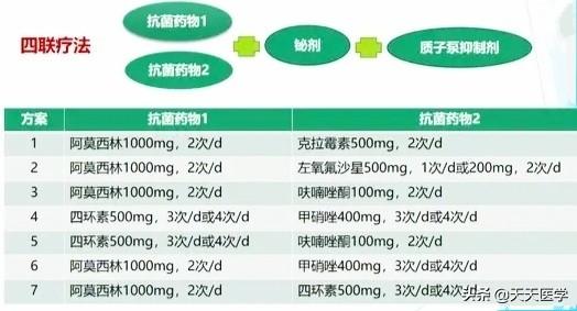 La principale méthode d'éradication de H. pylori est le traitement anti-H. pylori standard, à savoir un inhibiteur de la pompe à protons (oméprazole, rabéprazole, ésoméprazole, etc.), plus un agent à base de bismuth (citrate de potassium de bismuth), plus deux antibiotiques (amoxicilline, tétracycline, clarithromycine, lévofloxacine, etc.), et le traitement spécifique doit être suivi par un médecin professionnel.