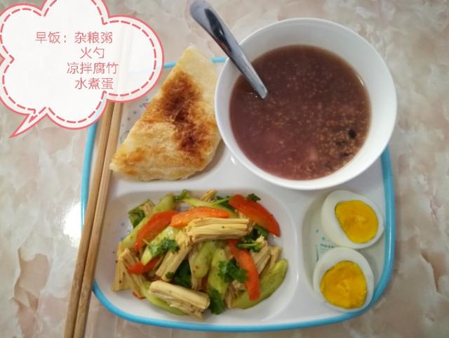 Déjeuner :Légumes sautés (porc effiloché sauté, poisson vapeur, etc., principalement légers), céleri aux algues, épinards à l'ail, concombre froid, légumes verts sautés, légumes verts sautés, griffes de poulet, lapin mijoté aux champignons, porc effiloché à la laitue, crevettes rôties au melon d'hiver, soupe de légumes verts, soupe de tomates et d'œufs.