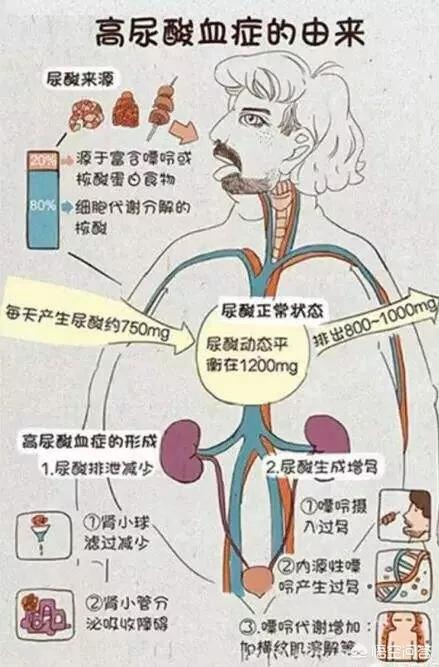 L'acide urique est dû au métabolisme d'une substance appelée "purine", qui entraîne la formation finale de déchets. Dans des circonstances normales, la quantité de déchets produits est excrétée par les reins, c'est-à-dire que la production et l'excrétion constituent l'équilibre dynamique de base de la relation. La production d'acide urique élevé est généralement due à la génération de plus, la quantité d'excrétion reste inchangée, ou la génération de normal, mais l'excrétion d'une réduction significative dans la quantité d'acidémie urique élevé, qui se produit, où la génération du corps contient le produit final de la nécrose cellulaire et la quantité totale de nourriture du total.