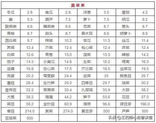 I. Prise en charge diététique : toujours contrôler l'apport quotidien en purines.Aliments à faible teneur en purine(moins de 25 mg de purines par 100 g d'aliments) et peut être utilisé en toute confiance ;Aliments à teneur moyenne en purine(25-150 mg de purines par 100 g de nourriture), peuvent être consommées en petites quantités ;aliments riches en purine(contenant plus de 150 mg de purine par 100 g d'aliment) est interdit. Le pharmacien Wang a compilé la teneur en purine d'aliments courants.
