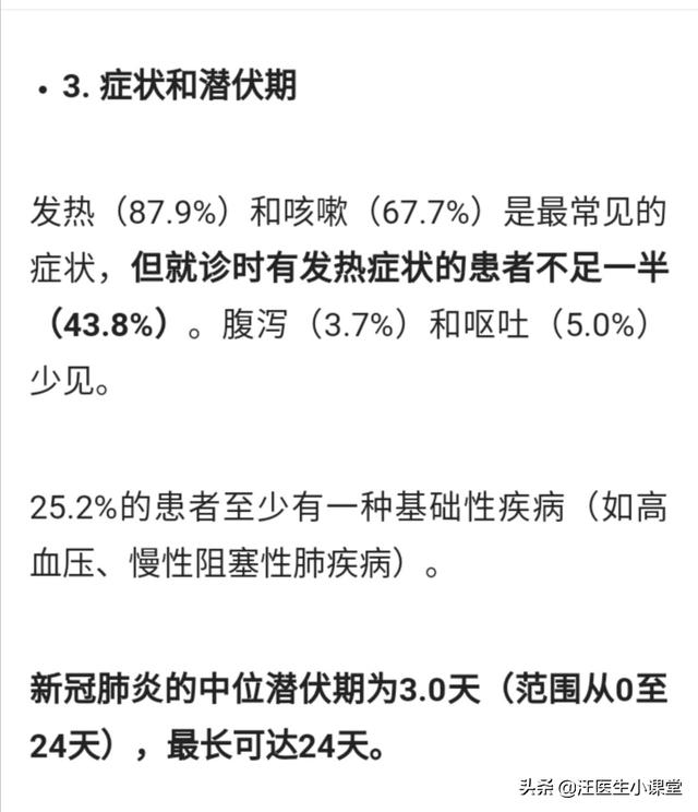 Il se trouve qu'aujourd'hui, un article a été publié sur l'académicien Zhong Nanshan qui a dirigé la publication d'un article intitulé "Clinical features of novel coronavirus infections in China in 2019", dont le contenu principal est une étude rétrospective des caractéristiques cliniques de plus de 1 000 cas confirmés de pneumonie néocoronavirale, dans laquelle figure une statistique sur le nombre de patients ayant de la fièvre, et les résultats statistiques montrent que 87,9 % des patients confirmés avec une pneumonie néocoronavirale présenteront des symptômes de fièvre, tandis que la consultation de l'académicien Zhong Nanshan a montré que les symptômes de fièvre étaient plus fréquents chez les patients ayant une pneumonie néocoronavirale. Moins de la moitié des patients (43,8 %) avaient de la fièvre au moment de la consultation, le deuxième symptôme le plus fréquent était la toux (67,7 %), et la diarrhée et les vomissements n'étaient présents que chez une minorité de patients.